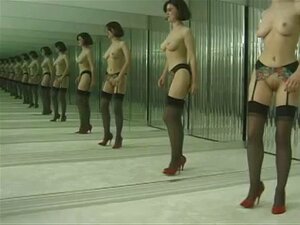 穿着丝袜的婊子在更衣室镜子前脱光衣服